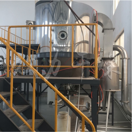 (3)当干燥室进口温度达到目180℃~220℃时,开启离心喷头,当喷头达到高转速时,开启进料泵,加入料液,进料量应由小到大,否则将产生粘壁现象,直到调节到适当量。料液的浓度应根据物料干燥的性质温度来配制,以保证干燥后成品有良好的流动性;